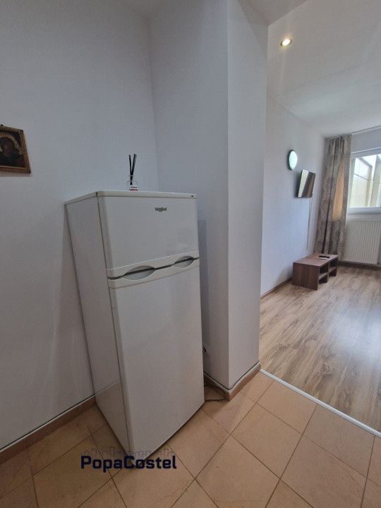 In Otopeni - Rin Nord Residence, langa aeroportul Henri Coanda, disponibila spre inchiriere o garsoniera de 28 mp situata la etajul 3/3 intr-un bloc modern din 2014, cu lift. Locuinta este de tip decomandat, fiind compartimentata in living cu bucatarie open space, baie si hol. Livingul are pat matrimonial si TV montat pe perete. Bucataria este echipata cu aragaz, hota si masina de spalat rufe, iar frigiderul este amplasat pe hol pentru a oferi mai mult spatiu. Baia este dotata cu cabina de dus. Finisajele includ parchet, gresie, faianta, ferestre PVC cu geam termopan, usi interioare MDF si usa metalica la intrare. Aerul conditionat face ca locuinta sa fie confortabila pe tot parcursul anului. Complexul ofera paza 24/7, supraveghere video, acces pe baza de cartela si interfon pentru siguranta, precum si alte facilitati: locuri de joaca pentru copii, spatii verzi de agrement, facilitati sportive. Proprietatea se afla la doi pasi de DN1, avand acces rapid la Soseaua de Centura si A0. Zona dispune de strazi asfaltate, iluminat public si acces facil la mijloace de transport in comun. Locuinta se inchiriaza complet mobilata si utilata exact ca in poze, fiind gata de mutat imediat. In pretul chiriei este inclus un loc de parcare in incinta complexului, cu acces prin bariera si telecomanda. Suntem agentie imobiliara si percepem comision. Pentru programari vizionari sau alte detalii nu ezitati sa ne contactati. Mai multe oferte, detalii si informatii gasiti pe site-ul nostru: PopaCostel.ro