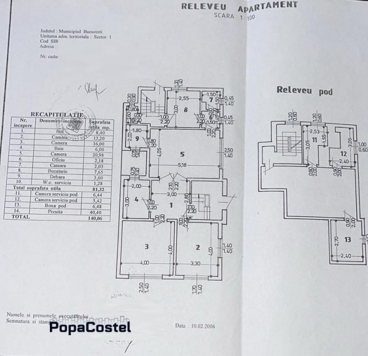 Gara de Nord - Plevnei disponibil spre vanzare apartament cu 3 camere situat la parterul unui imobil interbelic construit in 1938, din caramida, cu regim de inaltime Subsol + Parter + 2 Etaje + Pod. Imobilul este construit in 1938, din caramida. Apartamentul este decomandat, are suprafata utila de 81,32 mp si este compartimentat in trei camere, bucatarie, baie, grup sanitar de serviciu, camara, debara, oficiu si hol. Pe langa acestea, proprietatea include o pivnita de 40,40 mp la subsol si un pod de 18,34 mp, astfel rezultand o suprafata totala de 140,06 mp. Imobilul beneficiaza si de cota parte indiviza de teren de 137 mp, iar accesul in apartamentul se face prin curtea interioara comuna. Finisajele includ parchet, gresie, faianta, tamplarie PVC cu geam termopan si obloane interioare din lemn. Confortul termic este asigurat de sistemul centralizat de termoficare, prin calorifere, iar pentru confort suplimentar exista aer conditionat. Zona ofera acces la toate mijloacele de transport public in comun si la toate facilitatile urbane. Pentru programari vizionari sau alte detalii nu ezitati sa ne contactati. Suntem agentie imobiliara si percepem comision. Mai multe oferte, detalii si informatii gasiti pe site-ul nostru: PopaCostel.ro